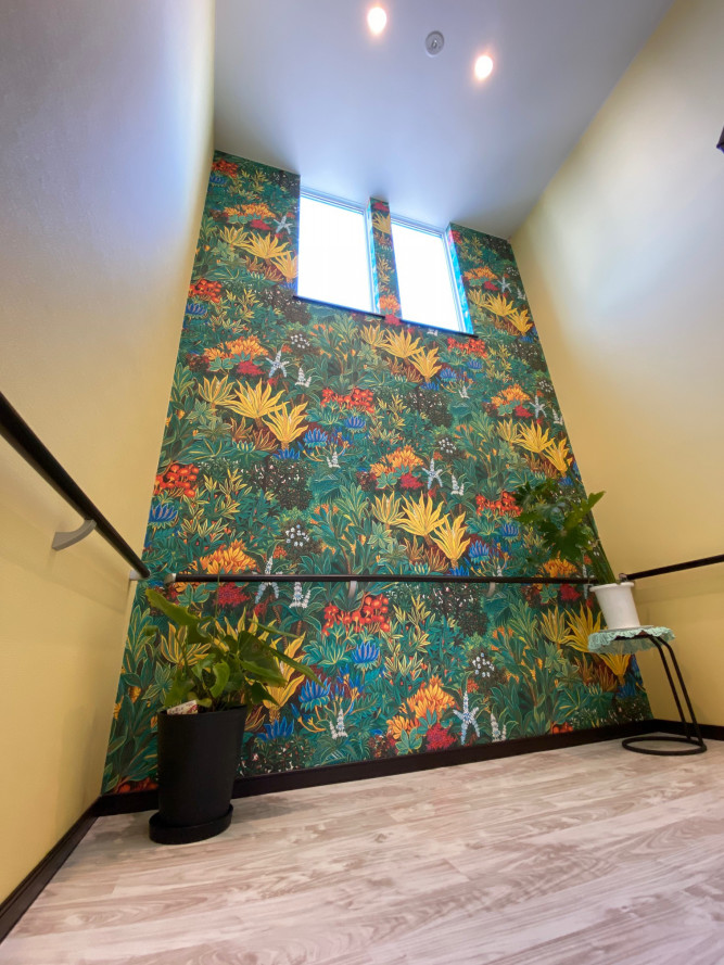 こちらは東棟の階段踊り場の壁紙です。