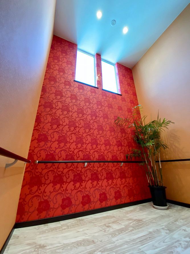 こちらもかなり目立つ壁紙になっております。
